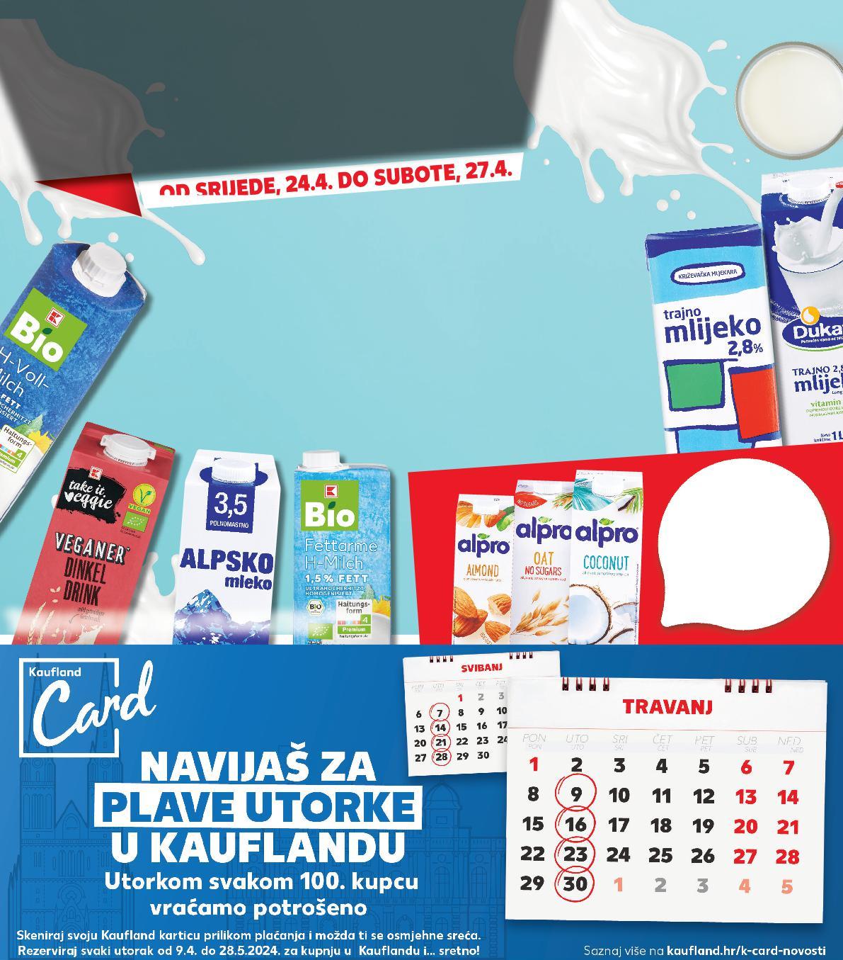 *Sve navedene cijene izražene su u eurima s PDV-om. Ne odgovaramo za tiskarske pogreške. Fotografije proizvoda ne moraju 100% odgovarati dotičnim proizvodima. Proizvode iz aktualne ponude možete kupiti samo u količinama predviđenim za kućanstvo. **Proizvodi označeni kao kratkotrajna ponuda na raspolaganju su do zadanog datuma, odnosno do prodaje zaliha. 0800 / 223 223 (besplatni telefon Službe za potrošače) Radno vrijeme Službe za potrošače: pon – sub 8:00 - 20:00 PEFC/23-31-86 PEFCCertified Thisproductisfrom sustainablymanaged forests www.pefc.co.uk Ponuda vrijedi za Kaufland trgovine u Zagrebu: Barutanski jarak, Sloboština, Maksimir, Sesvete, Studentski grad, Središće, Blato, Jankomir, Zagrebačka, Jablanska i Pešćenica. OD SRIJEDE, 24.4. DO SUBOTE, 27.4. D IJEDE, MEGA PONUDA TJEDNA SAMO U ZAGREBU SVI MLIJEČNI I BILJNI NAPITCI PO SUPER CIJENAMA VIŠE OD 110 PROIZVODA Ako imate
