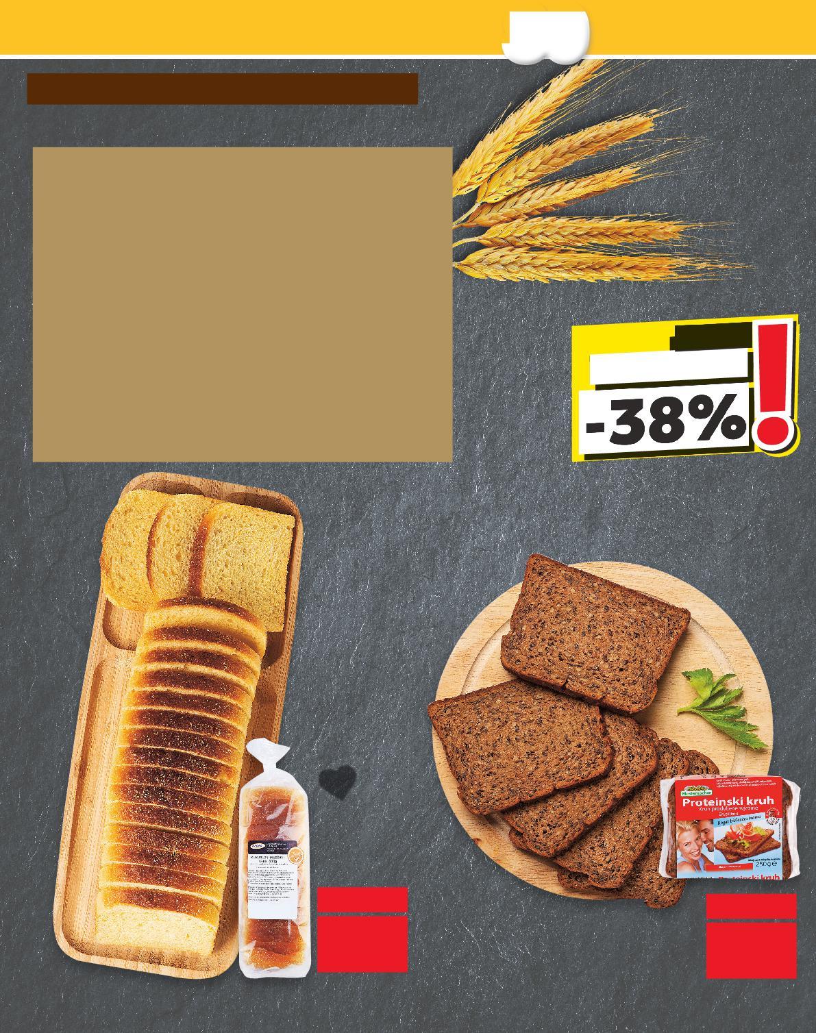 -38% SUPER POPUSTI SVJEŽI DO SUPER CIJENA-26% 1.39€ 1.89€ (=1 kg 2,32€) Kruh kukuruzni miješani 600 g SUPER CIJENA-38% 1.99€ 3.25€ (=1 kg 7,96€) MESTEMACHER Proteinski kruh 250 g Pronađi više od 80 RAZLIČITIH ZAPAKIRANIH PEKARSKIH PROIZVODA