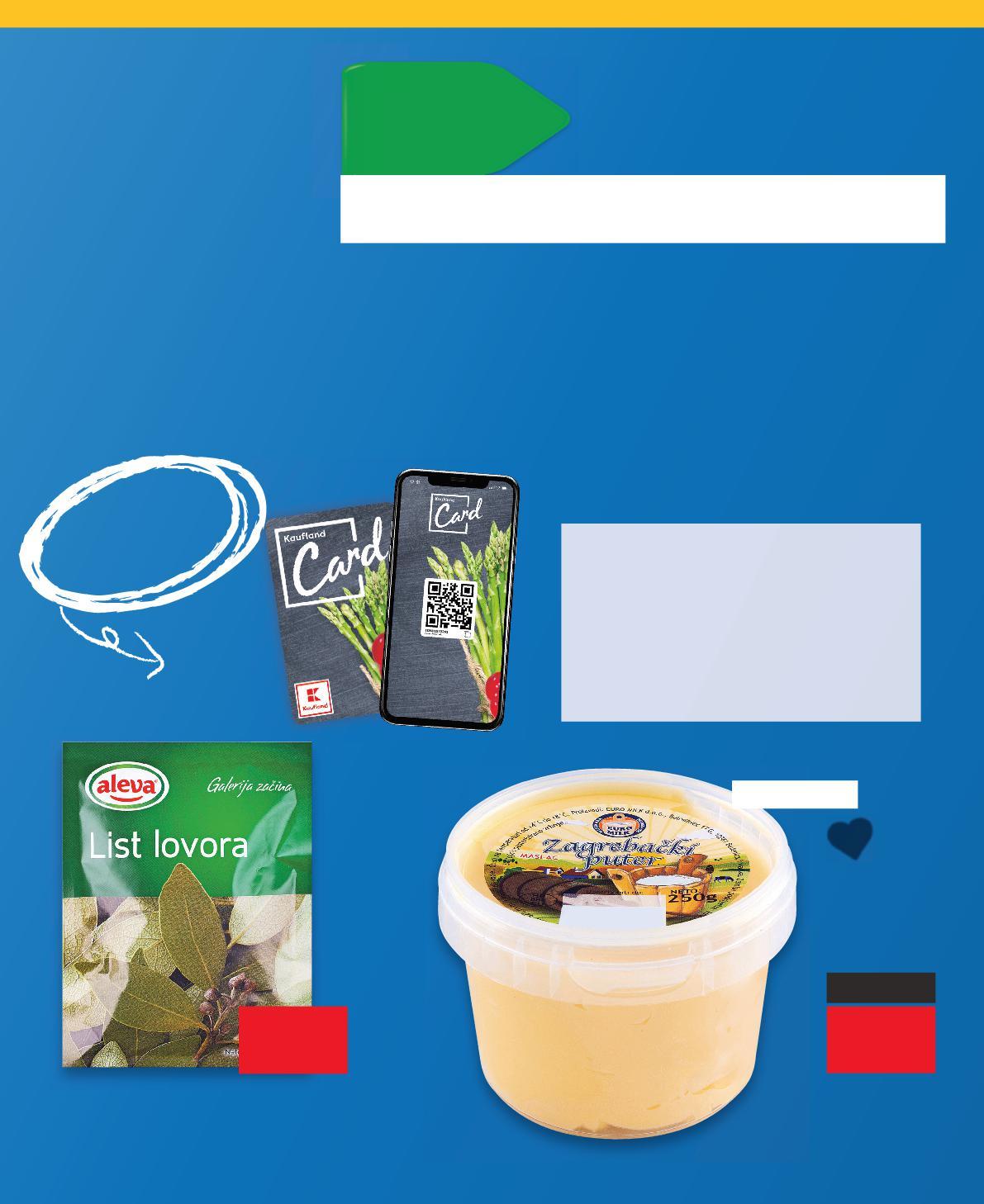 OKUS KOJI VRAĆA U DJETINJSTVO (=1 kg 14,76€) ZAGREBAČKI PUTER Maslac 82% m.m. 250 g samo 3.69€ ISPROBAJ NOVITETE I OSTVARI SUPER POPUSTE! U PONUDI SAMO UZ KAUFLAND CARD Garantiramo ti bogat izbor svaki dan! OD SRIJEDE, 24.4.2024. IZ RASHLADNE VITRINE -20% ALEVA Lovorov list 10 g samo 0.79€ -20% ✓maslac I. klase SVAKITJEDAN NOVI KUPONI! SKENIRAJIUŠTEDI! S50-HR-KW17-LFT-NOVITETI_1_L-1030-11 50