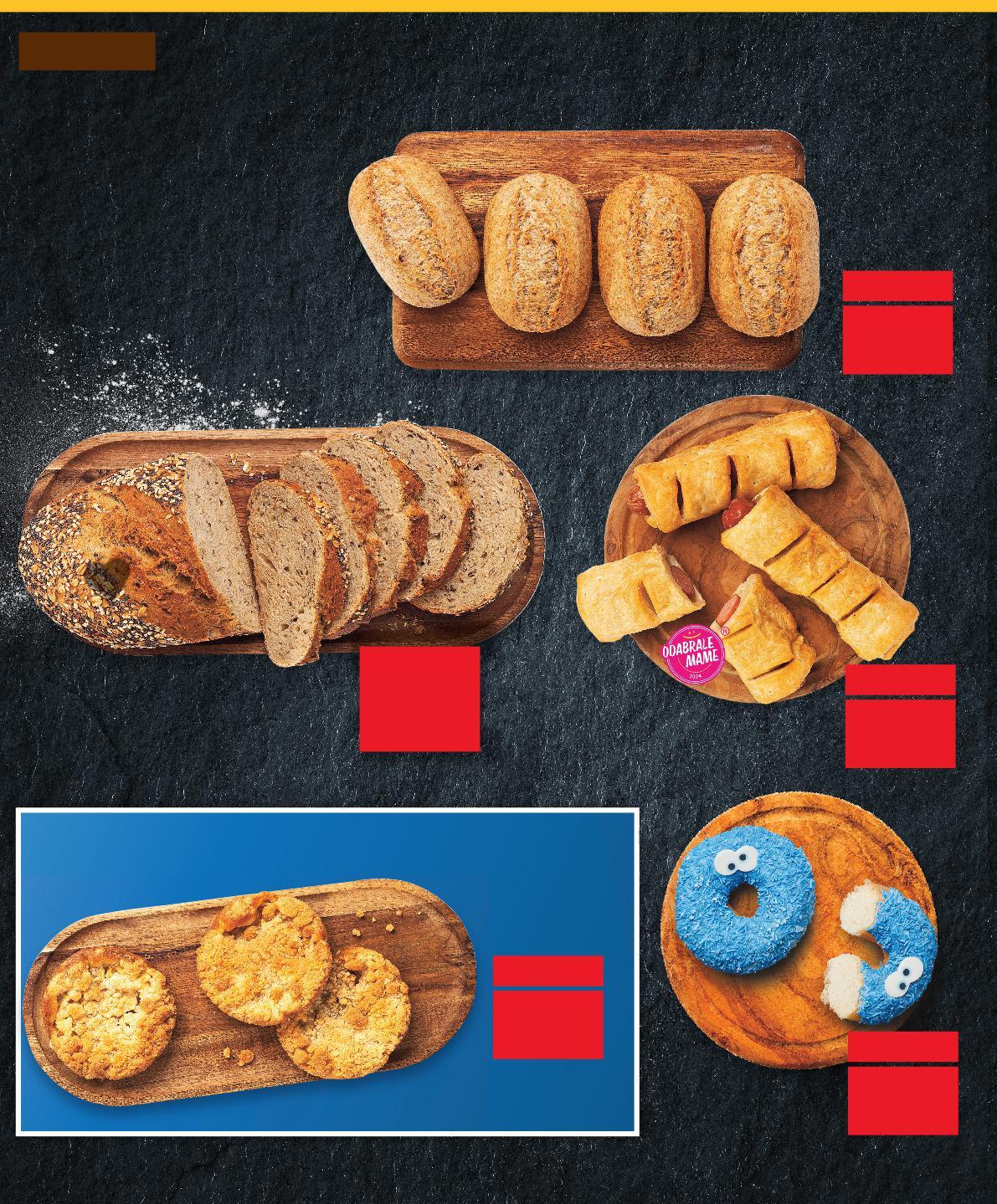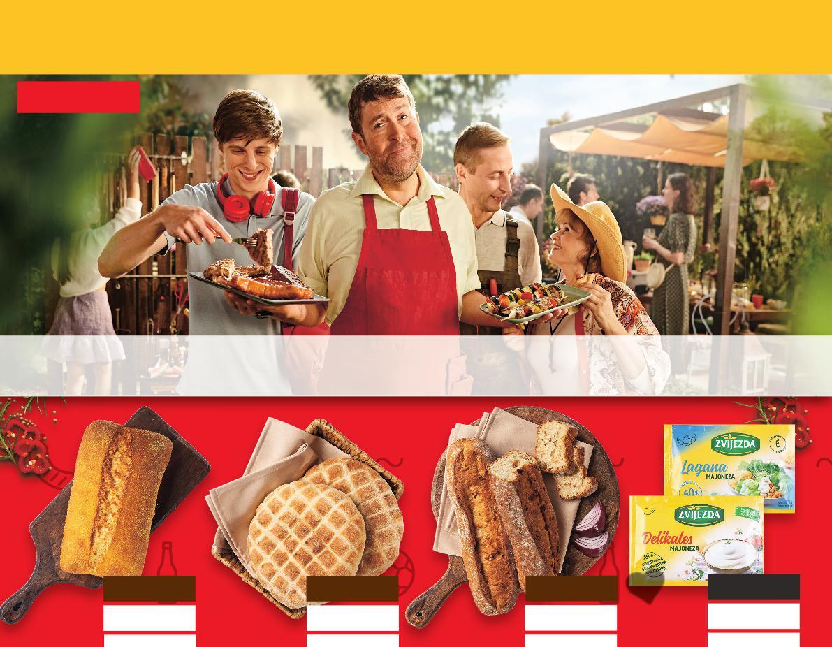 Svježe, kvalitetno, povoljno! 1.05€ samo SUPER CIJENA Kolač od jabuke 80 g (=1 kg 12,38€) SUPER CIJENA SUPERCIJENA UPER-0% 0% samo 0.99€ Poli hrenovka u lisnatom tijestu 120 g (=1 kg 6,59€) samo SUPER CIJENA SUPERCIJENA UPER-0% 0% 0.79€ samo SUPER CIJENA SUPERCIJENA UPER-0% 0% 0.15€ (=1 kg 2.-€) Fitty kruh pšenični miješani bez kvasca, sa sjemenkama 400 g (=1 kg 2,63€) Graham pecivo pšenično miješano od cjelovitog zrna 75 g
