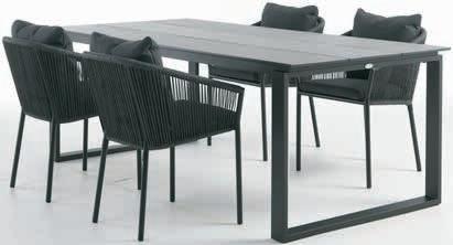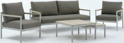 Produženi dvosed i stolice: aluminijum i nauljeno FSC™ tvrdo drvo. Sa luksuznim jastucima sa dugotrajnom, grubo tkanom olefinskom navlakom. Olefinska tkanina ima postojanu boju i ne upija vlagu. 129999,-