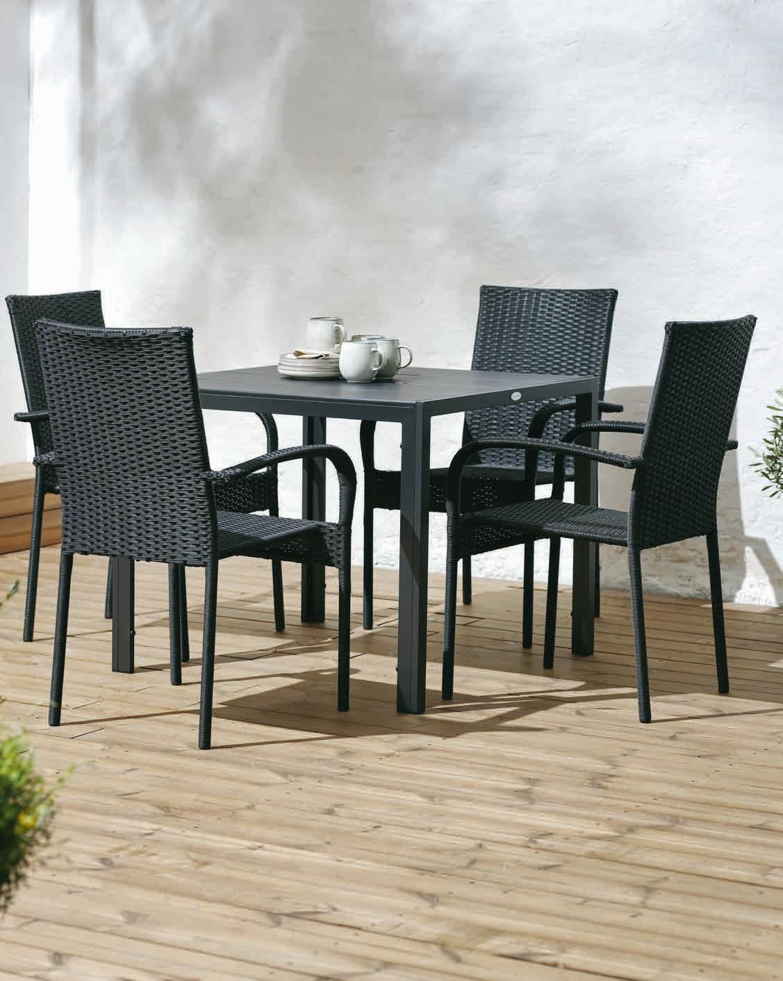 KUMLA sto + INGSTRUP stolice Sto: aluminijum i keramika. Ploča stola od keramike otporna je na ogrebotine, mrlje i toplotu. Š95xD150xV74 cm. Stolice: plastika sa UV-zaštitom. Mogu da se slažu jedna na drugu Sto* 39999,- 25000,- Stolica 4699,- 3500,-