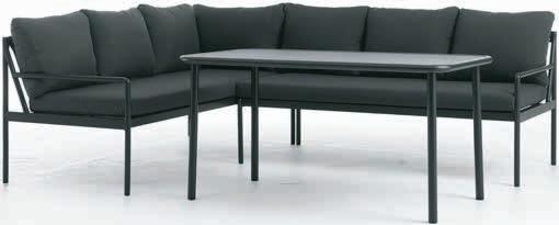 Sto: čelik i sinterovani kamen. Š75xD135xV68. Ugaona garnitura za 6 osoba: čelik i tekstilen. Sa luksuznim jastucima sa dugotrajnom, grubo tkanom navlakom. 79999,-