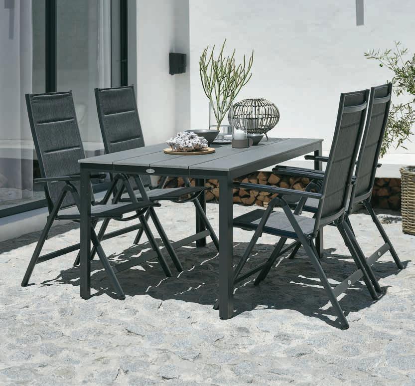 Stolice: aluminijum, tekstilen i nauljeno FSC™ tvrdo drvo. 6 položaja. Sklopive. Sto 29999,- 20000,- Stolica 12999,- 7500,-