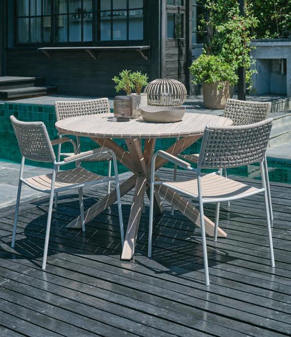 Stol: Aluminij i umjetno drvo. Š90xD150xV74 cm. Stolice: Aluminij i petan. Stol 199 € 150€ Stolica* 119 € 90€