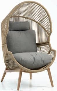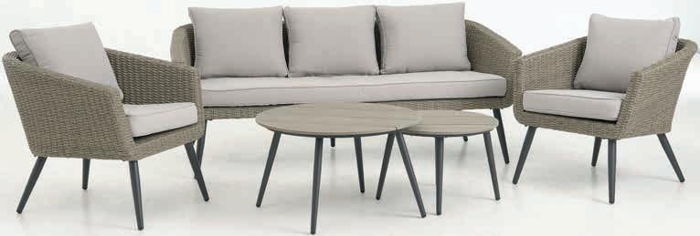 Sto: aluminijum i veštačko drvo. Ø72/53xV42/36 cm. Trosed i stolice: aluminijum i petan. Sa luksuznim jastucima sa dugotrajnom, grubo tkanom navlakom. 129999,-