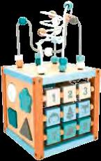 Drvena kocka s raznim postajama. Potiče motoričke sposobnosti i pažnju. Dimenzije 20×20cm. Od 12 mjeseci.