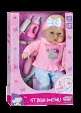 Mekano ispunjena lutka s dodacima. Veličina cca 33cm. Od 3 godine.