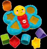 Veseli leptir sa 6 oblika u različitim bojama za ubacivanje i razvrstavanje. Razvija finu motoriku i uči bebu oblicima i bojama. Od 6 mjeseci.