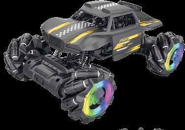 Značajke: amortizeri, kaskaderski kotači, svjetlo na kotačima, vožnja po različitim terenima i u svim smjerovima, daljinsko upravljanje, AWD (pogon na sve kotače)