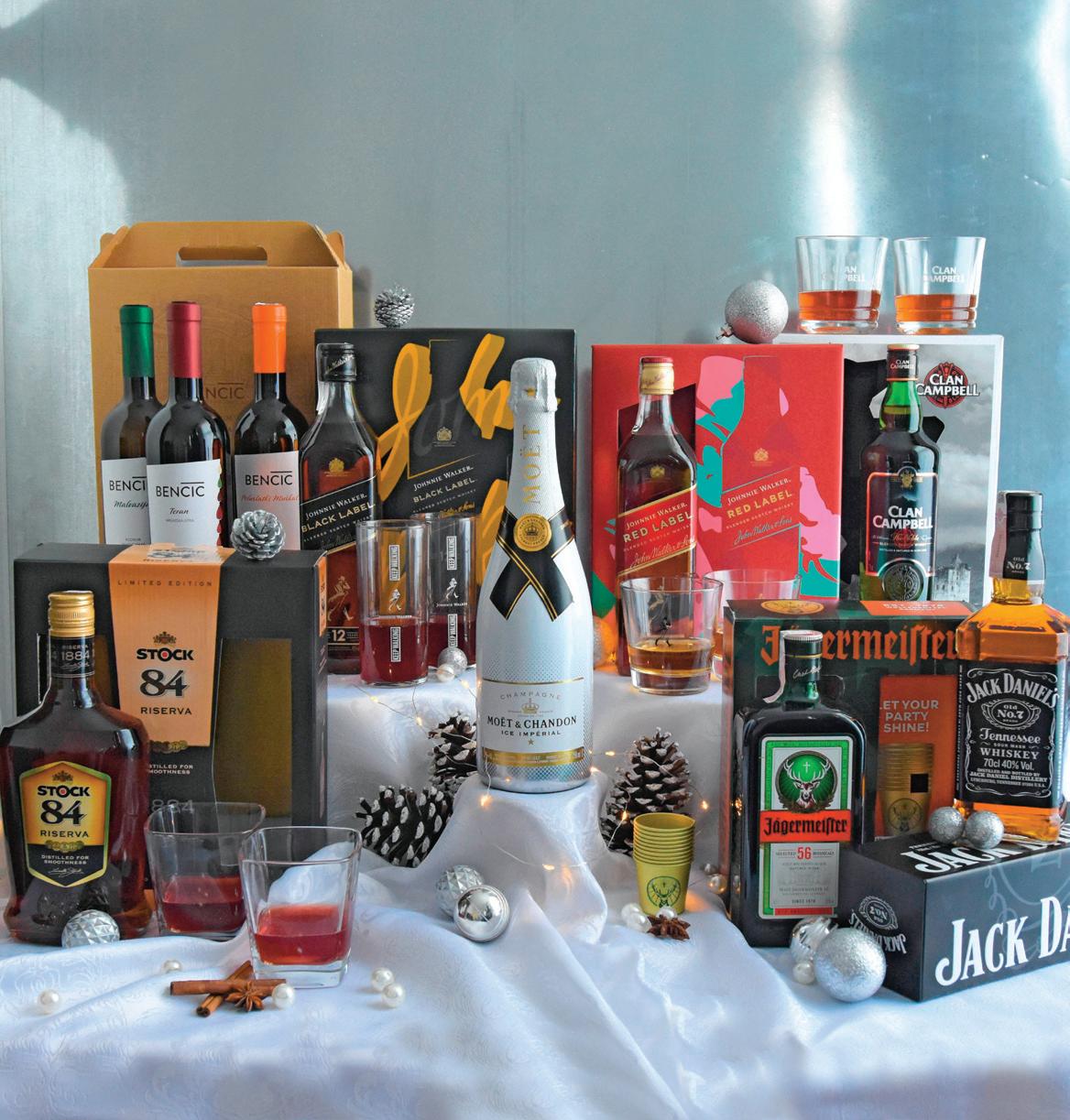 1. pOKLON-pAKET VINA BENČIĆ, Malvazija, Teran, Poluslatki Muškat 3 x 0,75 L, cijena: 19,99 €; 2. whISKY JOhNNIE wALKER BLAcK LABEL, 0,7 L + 2 čaše, cijena: 35,49 €, 1 L = 50,70 €; 3. whISKY JOhNNIE wALKER RED LABEL, 0,7 L + 2 čaše, cijena: 16,99 €, 1 L = 24,27 €; 4. whISKY cLAN cAmpBELL, 0,7 L + 2 čaše, cijena: 14,99 €, 1 L = 21,41 €; 5. STOcK 84, 0,7 L + 2 čaše, cijena: 16,99 €, 1 L = 24,27 €; 6. ŠAmpANJAc mOET chANDON IcE, 0,75 L, cijena: 69,99 €, 1 L = 93,32 €; 7. LIKER JÄGERmEISTER, 0,7 L + 10 aluminijskih čašica, cijena: 14,99 €, 1 L = 21,41 €; 8. pOKLON-pAKET whISKEY JAcK DANIELS, 0,7 L, cijena: 29,99 €, 1 L = 42,84 €