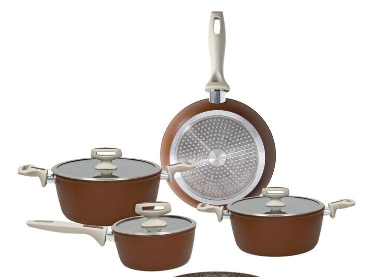 3. Set poSuđa pearlbrown Stone s neprianjajućim premazom, pogodno za sve vrste štednjaka, 8-dijelni, 1 set, cijena: 99,99 €