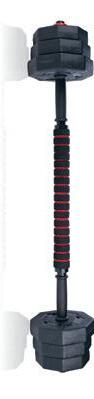 Set se sastoji od 2 utega x 2,5 kg, 2 utega x 1,5 kg, 2 utega x 0,5 kg i šipke s dva vijka.