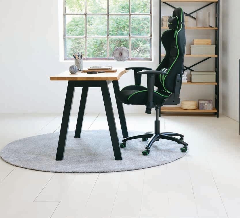 Umjetna koža. Jastuci za dodatnu podršku lumbalnom dijelu leđa i vratu. S podesivim naslonima za ruke, kliznim nagibnim mehanizmom i podesivom visinom.