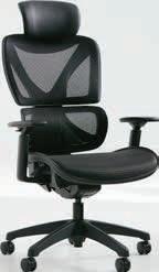 Mreža. Baza od čelika. Jastuci za dodatnu potporu lumbalnom dijelu leđa i vratu. S podesivim naslonima za ruke, kliznim nagibnim mehanizmom i podesivom visinom.