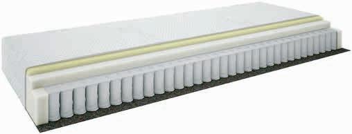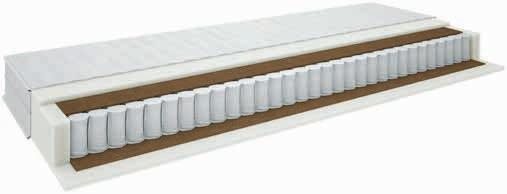 Kvalitetan dvostrani madrac s džepičastim oprugama (256/m²), podijeljen na 5 zona udobnosti, pružajući tako optimalnu potporu. Sa slojem prozračnih kokosovih vlakana i polieterske pjene. Navlaka prošivena pamukom i poliesterskim vlaknima. Visina: 19