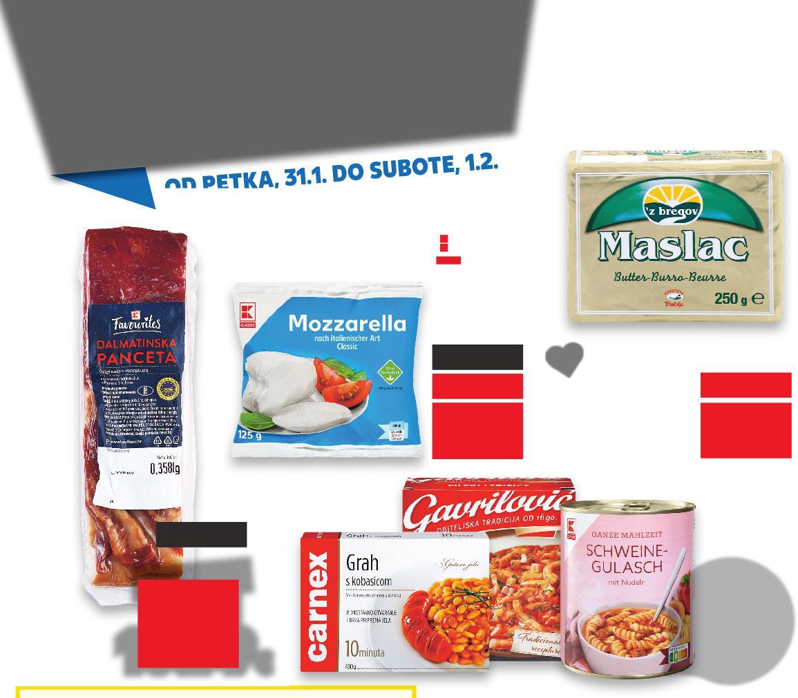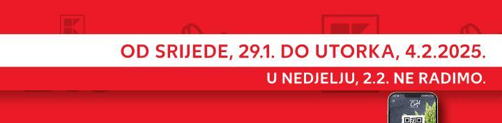 *Sve navedene cijene izražene su u eurima s PDV-om. Ne odgovaramo za tiskarske pogreške. Fotografije proizvoda ne moraju 100% odgovarati dotičnim proizvodima. Proizvode iz aktualne ponude možete kupiti samo u količinama predviđenim za kućanstvo. **Proizvodi označeni kao kratkotrajna ponuda na raspolaganju su do zadanog datuma, odnosno do prodaje zaliha. 0800 / 223 223 (besplatni telefon Službe za potrošače) Radno vrijeme Službe za potrošače: pon – sub 8:00 - 20:00