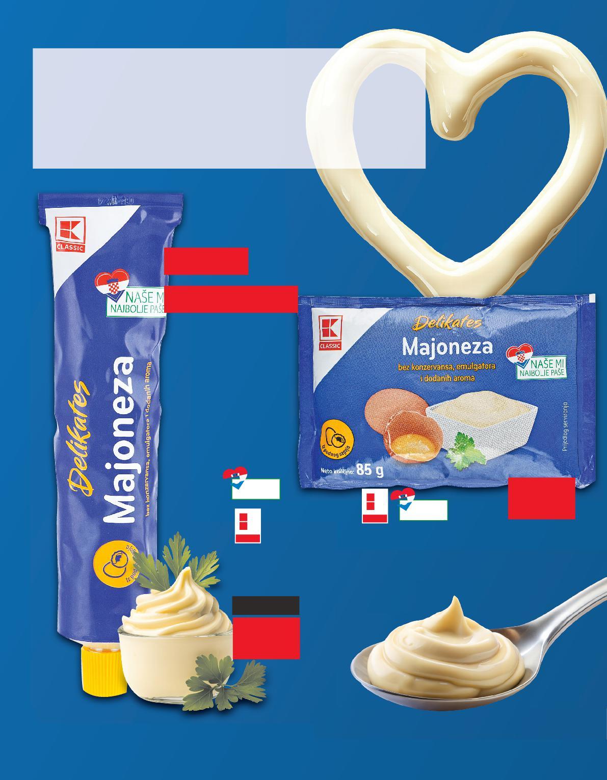 Namirnica koja se mora naći na svakom obiteljskom stolu! Isprobaj našu novu K-Classic delikates majonezu s oznakom domaće kvalitete „Naše mi najbolje paše“. Sadrži jaja iz podnog uzgoja, a odlikuje ju kvalitetan sastav bez konzervansa, emulgatora i dodatnih aroma.