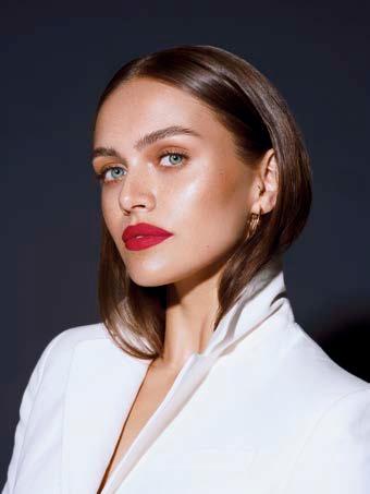 Tekući, brzosušeći ruž za usne visoke pokrivne moći i puderasto mat završetkom.