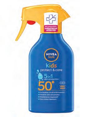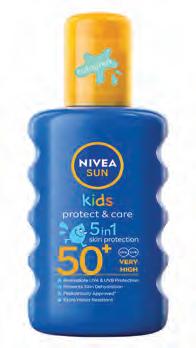 Prepusti se uživanju usuncu bez UV zračenja Nivea Sun Protect & Care dečiji sprej za zaštitu od sunca • SPF 50+ 2249.99 270 ml 1 l = 8 334.- din # 229957 Nivea Sun Protect & Moisture sprej za zaštitu od sunca • SPF 50+ 1999. 270 ml Nivea Sun Protect & Care dečiji obojeni sprej za zaštitu