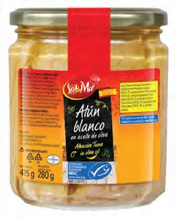 Sol&Mar Ćorizo kobasica • Klasik ili ljuta 219.99 80 g 100 g = 274.99 din # 228321 Sol&Mar Mini kobasice • Ćorizo ili fuet kobasica 100 g kobasice proizvedeno od 155 / 180 g svinjskog mesa Sol&Mar Španska Serrano šunka • Sušena na vazduhu sa periodom zrenja od minimum 11 meseci • Narezana 699.99 240 g 1 kg = 2 917.- din # 204716 100 g proizvoda proizvedeno od 146 g svinjskog mesa 319.99 200 g 1 kg = 1 600.- din # 206354 100 g kobasice proizvedeno od 140 g svinjskog mesa Sol&Mar Ajoli sos • Salatni preliv sa belim lukom 200 g 179.99 # 205389 1 kg = 899.95 din 999.99 415 g 1 kg = 2 410.- din # 268856 Sol&Mar Bela tuna u maslinovom ulju Sve cene su izražene u dinarima sa PDV-om. Fotografije ne moraju odgovarati stvarnom izgledu proizvoda i izvinjavamo se zbog mogućih štamparskih grešaka. Proizvodi su dostupni do isteka zaliha ili do završetka akcijskog perioda. KN · 18/24 OD ČETVRTKA 02.05.
