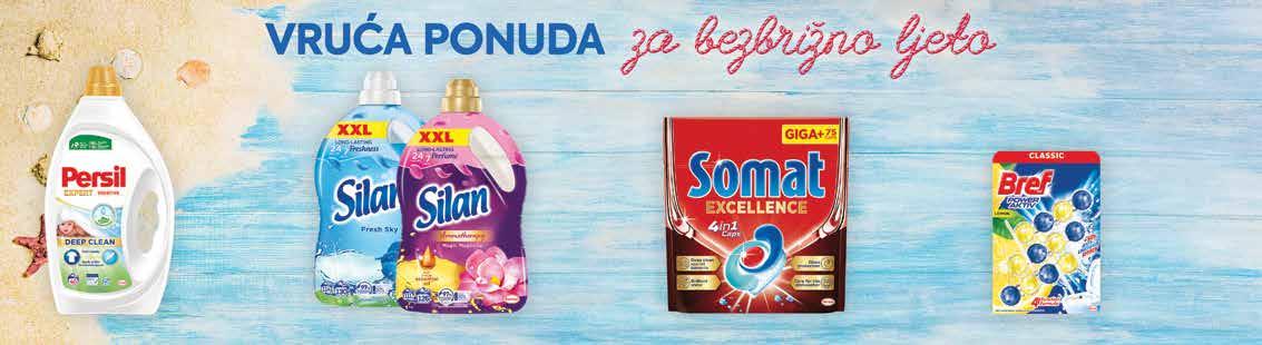 za pranje rublja, razne vrste gel, 1,8 L/40 pranja 1 L = 5,55 € / 1 pranje=0,25 € 1 L već od 2,09 € 1 kom = 0,19 € SILAN Omekšivač za rublje, razne vrste, od 2,7 L do 2,86 L 5,99 € 13,99 € 2,99 € 9,99 € SOMAT Sredstvo za strojno pranje posuđa, tablete, Excellence 75/1 1 kom = 1,00 € BREF Osvježivač za WC školjku, Classic, razne vrste, 3x50 g Sredstvo za čišćenje stakla Teta Violeta 750 ml 1 L = 2,12 € Mirisne perlice Lenor razne vrste 210 g 1 kg = 19,00 € Šampon za kosu Pantene odabrane vrste 360 ml ili 400 ml 1 L od 9,98 € do 11,08 € Zubna pasta Elmex Caries Protection, Sensitive ili Sensitive Whitening 75 ml 1 L = 47,87 €