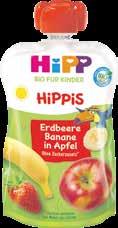 Voćni pire Hippis 100 g jabuka/banana/malina/žitarice, jabuka/banana/ dječji keks, jabuka/banana/jagoda, jabuka/ breskva/šumsko voće ili jabukakruška/banana (1 kg=10,50 €)