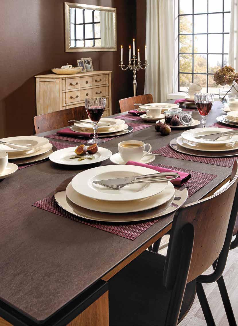 7: Servis za jelo Mesh 18/1, za 6 osoba , porculan, boja: bijela, set sadrži: 6 dubokih Ø 21 cm, 6 plitkih Ø 27 cm i 6 desertnih tanjura Ø 21 cm, pogodno za perilicu posuđa i mikrovalnu pećnicu. Podmetač Tiffany, umjetna tekstilna vlakna, obostrana upotreba, u ponudi više boja, 43x30 cm. (35720549;54180109/01-06,08,10)