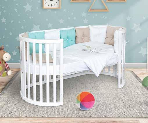 10: Dječji krevetić Lory 4/1 , sastoji se od krevetića, madraca 60x120 cm, plahte i posteljine od pamuka, podnica podesiva po visini, max opteretivost cca 15 kg, mogućnost pretvorbe u krevet za juniore Dječji madrac Smile, s bonell jezgrom, oblogom od kokosa i PU pjene te 100% pamučnom navlakom, visina 15 cm, max 80 kg, 60x120 cm 89,99 69,99 €, 70x140 cm 99,99 79,99 € (88600002/01;06980162/01-02)