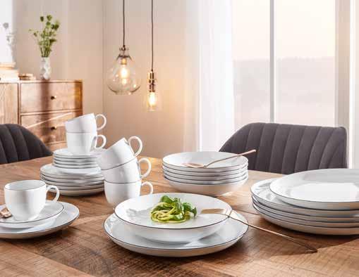 Premium porculan, set se sastoji od: 4 duboka, 4 plitka i 4 desertna tanjura, 4 male žličice, 4 žlice, 4 noža, 4 vilice, 4 čaše od 470 ml i 4 čaše od 570 ml, pogodno za perilicu posuđa i mikrovalnu pećnicu (34071430)