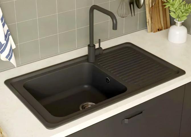 Sudoper 'Carea Venus' + slavina 'Dynamo' d 86 x š 50 x v 22 cm, reverzibilan, crni 31846295