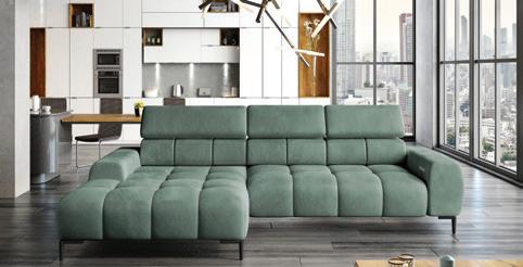 2.659 € Kutna garnitura PATTON S, 270x177 cm, lijeva ili desna strana, električno pomično sjedalo,3x pomični naslon za glavu, cijena vrijedi za materijal Salvador 15 (antracit, isporuka odmah) i Salvador 12 (mint, za narudžbu).