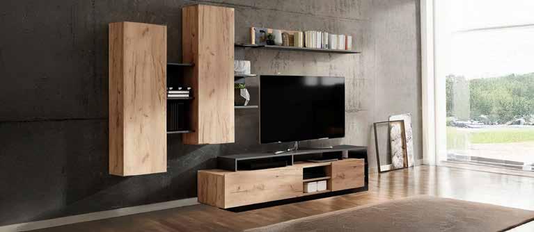 Regal za dnevni boravak Russo, dekor antrisan hrast/antracit siva, dim.: 270x180x44 cm. Uz nadoplatu dostupan klub stolić dim.: 120x53x60 cm (21400216/01)