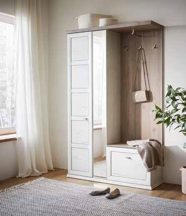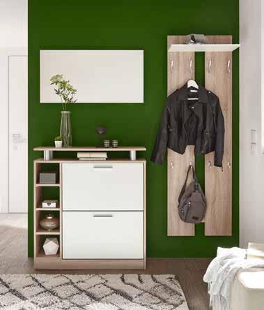 Predsoblje Avensis, dekor hrasta/bijela visoki sjaj, ogledalo, dim.: 85x87 cm, ormar, 1 vrata, dim.: 52x205,7x37,1 cm, ormarić za obuću, dim.: 85x98,6x37,1 cm, garderobni panel dim.: 70x161,6x28,9 cm, klupa , dim.: 70x44x37,1 cm, ormar, 2 vrata, dim.: 66,8x205,7x37 cm (18030512/02-04,06-08)