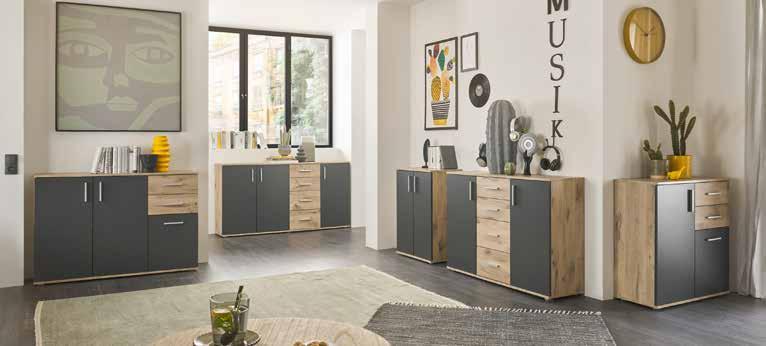 Komode Konya , dekor hrasta/siva, dim.: 60x84x35 cm, 2 vrata, dim.: 120x84x35 cm, 3 vrata, 2 ladice, dim.: 160x84x35 cm 3 vrata, 4 ladice, dim.: 80x84x35 cm, 2 vrata, 2 ladice, dim.: 120x84x35 cm, 2 vrata, 4 ladice (08870608/01-05)