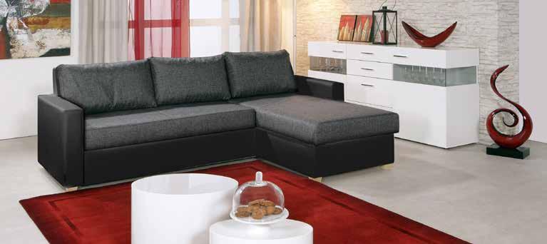 garnitura Inga Lux mini, lijevi ili desni kut, boja: crna/siva, bijela/siva, bež/smeđa, dim.: 155x230 cm, ležaj dim.: 140x200 cm i sanduk za posteljinu uključeni u cijenu (15240021/05,08-12)