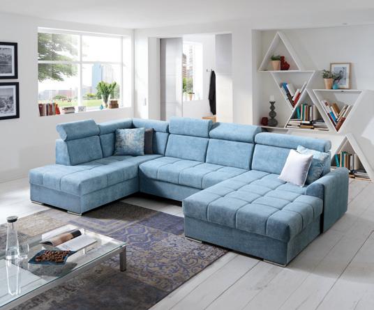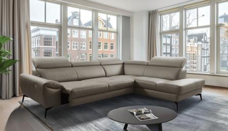 Kutna garnitura PATTON L, opružna jezgra, 300x216cm, 1x elek. pomično sjedište, 1x pomični naslon, 5x podesivi glavonaslon, cijena vrijedi za tkaninu 1. kategorije Cloud.