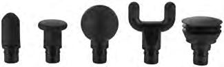 • 5 različitih dodataka za individualnu upotrebu različitih mišićnih grupa: Konusna glava – za duboko mišićno tkivo i ciljanu masažu tačaka (npr. taban) Ravni nastavak - za velike površine na celom telu (npr. butine)