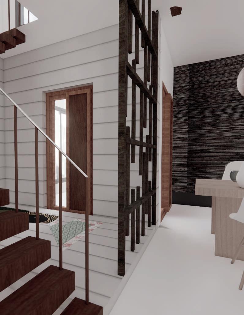 F A C A D E T H E F A Ç A D E O F T A M B I H O U S E F A C E S N O R T H , A L I G N I N G W I T H T H E S I T E ' S O R I E N T A T I O N , S O T H A T I T S U T I L I Z A T I O N I S M A X I M I Z E D A N D A C C E S S I S F A C I L I T A T E D . S E C O N D F L O O R A Q U I E T E R A R E A I S D E V E L O P E D O N T H E S E C O N D L E V E L T O M A K E H O U S E M A T E S F E E L A T H O M E . F I R S T F L O O R A P R A Y E R R O O M W I T H A L I T T L E G A R D E N F O R L I G H T I N G A N D V E N T I L A T I O N L O C A T E D O N T H E F I R S T F L O O R N E A R T H E S T A I R S .