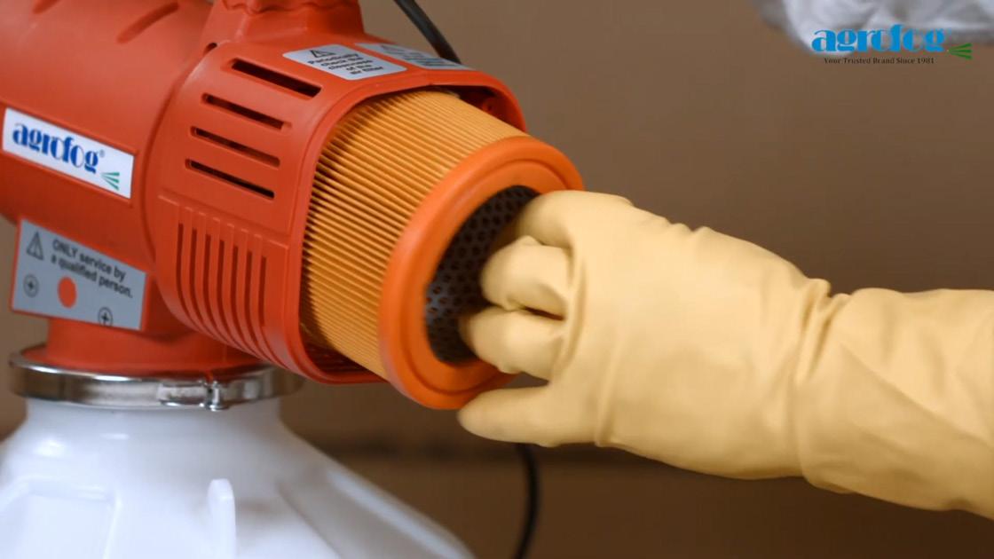 Periodically check the cleanliness of the air filter (11). If the motor does not breathe a sufficient quantity of clean air, the fogging operation will be inefficient and the motor could be overheated.