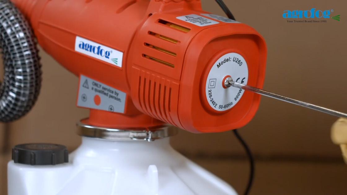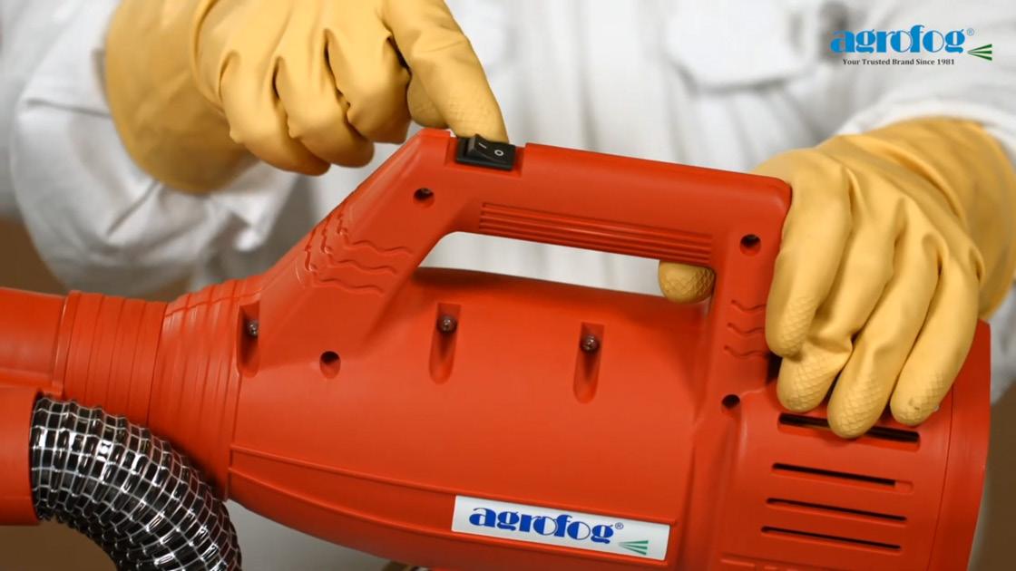 Airofog ULV cold fogger operates effectively according to ultra low volume (ULV) method. A powerful electric motor distributes the fine droplets evenly over the affected area. The droplets remain airborne for a sufficient time. The needle dosage control knob allows a liquid volume control, depending on the viscosity level of the liquid to be fogged.