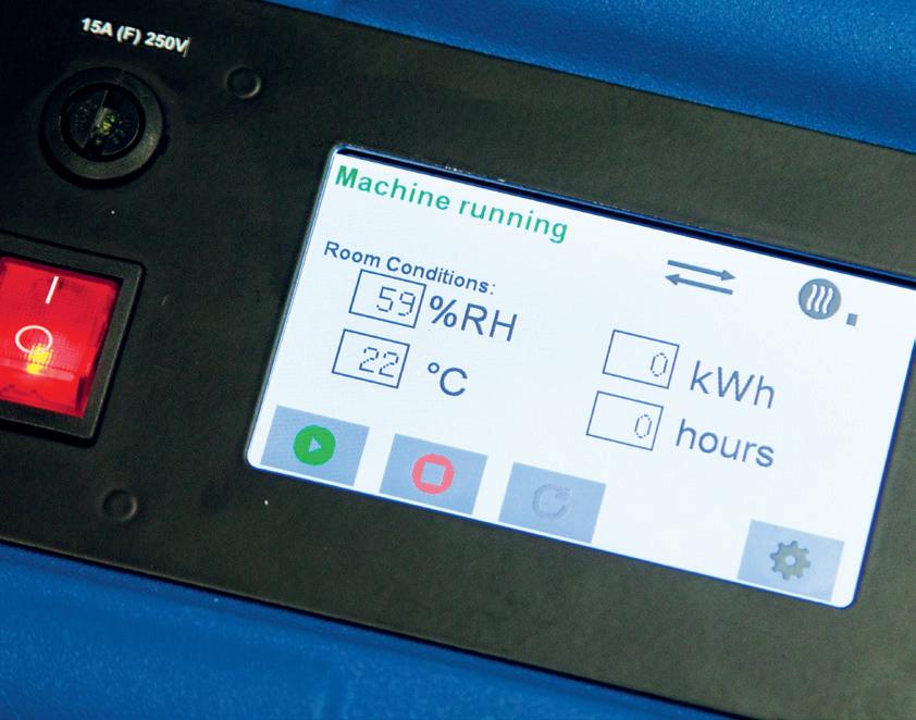 Gør det muligt at opnå en ekstremt lav relativ fugtighed <10%RH. Kontrolleret rumtemperatur på op til maks. 50° C grader. kWh-måler med indbygget hukommelse af tørreprogrammer, der ikke slettes i tilfælde af strømsvigt.