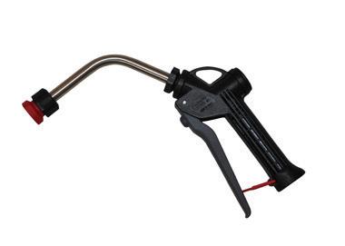 Du kan byta ut den vanliga sprutlansen mot den korta 13 cm sprutpistolen med vinkel (art.nr 329.412) och därmed enkelt och effektivt spruta över huvudet i liggande läge.