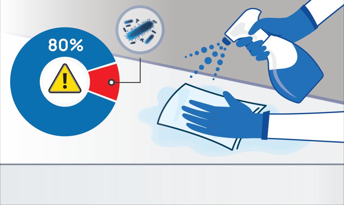 Conventional manual spray & wipe disinfection only reaches around 80% of the potentially contaminated surfaces. = Efficacy gap!