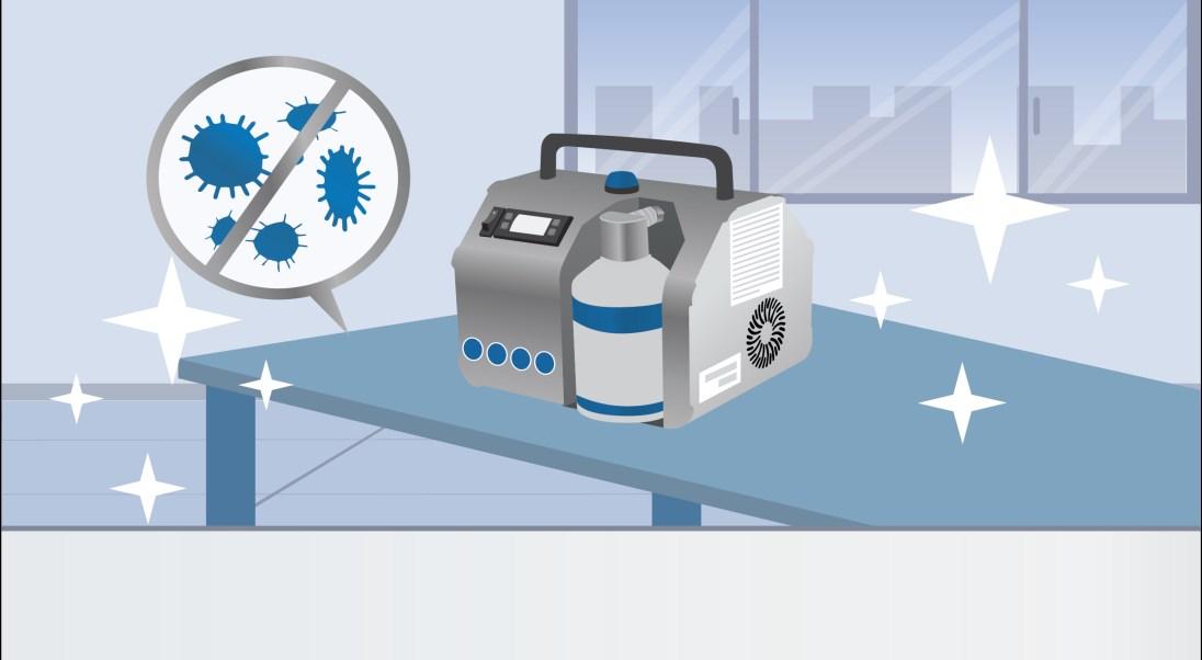 Additional aerosol disinfection after manual spray and wipe treatment reaches all surfaces in the room and reliably closes the efficacity gap.