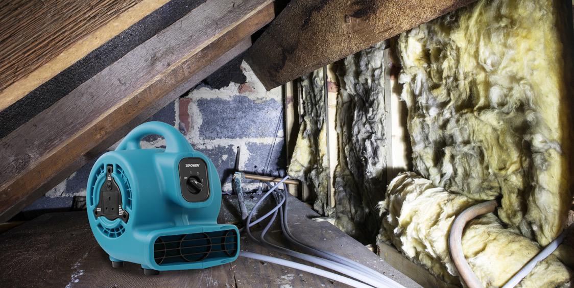 Eksempler på opgaver, hvor vi anbefaler brug af XPOWER centrifugal-ventilator: VANDSKADER • BRANDSKADER • OG AL ANDEN VENTILERING AF RUM OG BYGNINGER