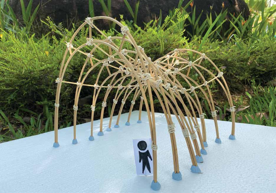 PROTOTYPE 2 - ADDING PURLINS - ADDING RIGIDITY (TRUSSES) & TAKE NOTE OF BAMBOO JOINERY