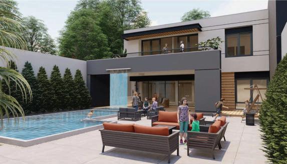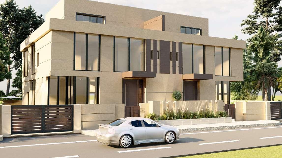 PROPOSED DESIGN FOR A TWO-STORY VILLA IN ABDOUN, AMMAN, JORDAN; CONTAINING 2 MASTER BEDROOMS, 2 BEDROOMS, GUEST ROOM, DINING ROOM, LIVING ROOM KITCHEN, OUTDOOR POOL, AND A ROOF.
