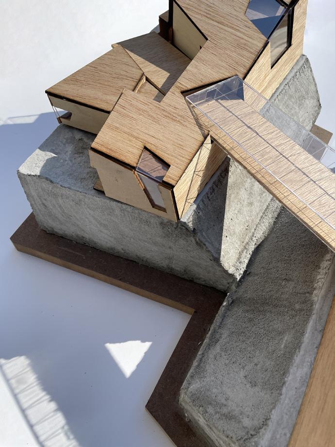 Located in Florida, this Trump Museum’s design reflects the division Americans felt under Trump’s presidency. The separated forms model the prejudice against the Muslim community when Trump’s Muslim ban was in effect. Trump’s ‘black and white’ notion of where terrorism comes from formed these two different shapes that only connect through the glass bridge running over the road. The bridge reflects that even if external forces create divisions- inevitably, people will interact with each other and a Muslim ban won’t prevent that.