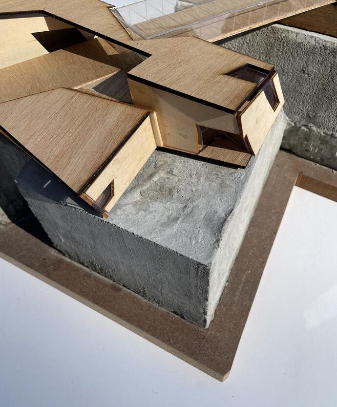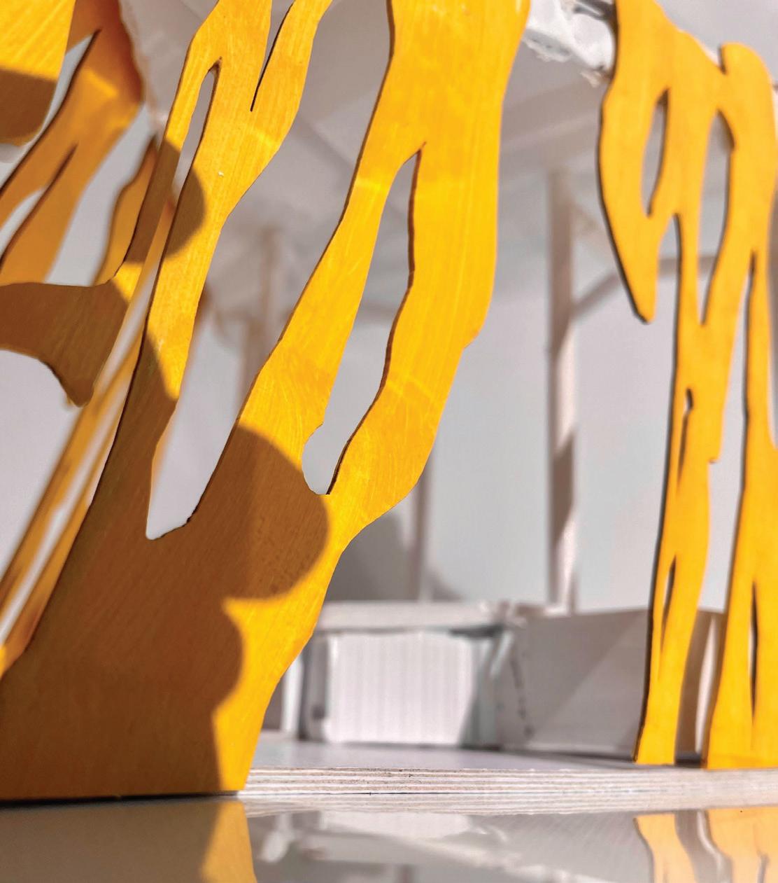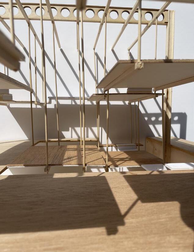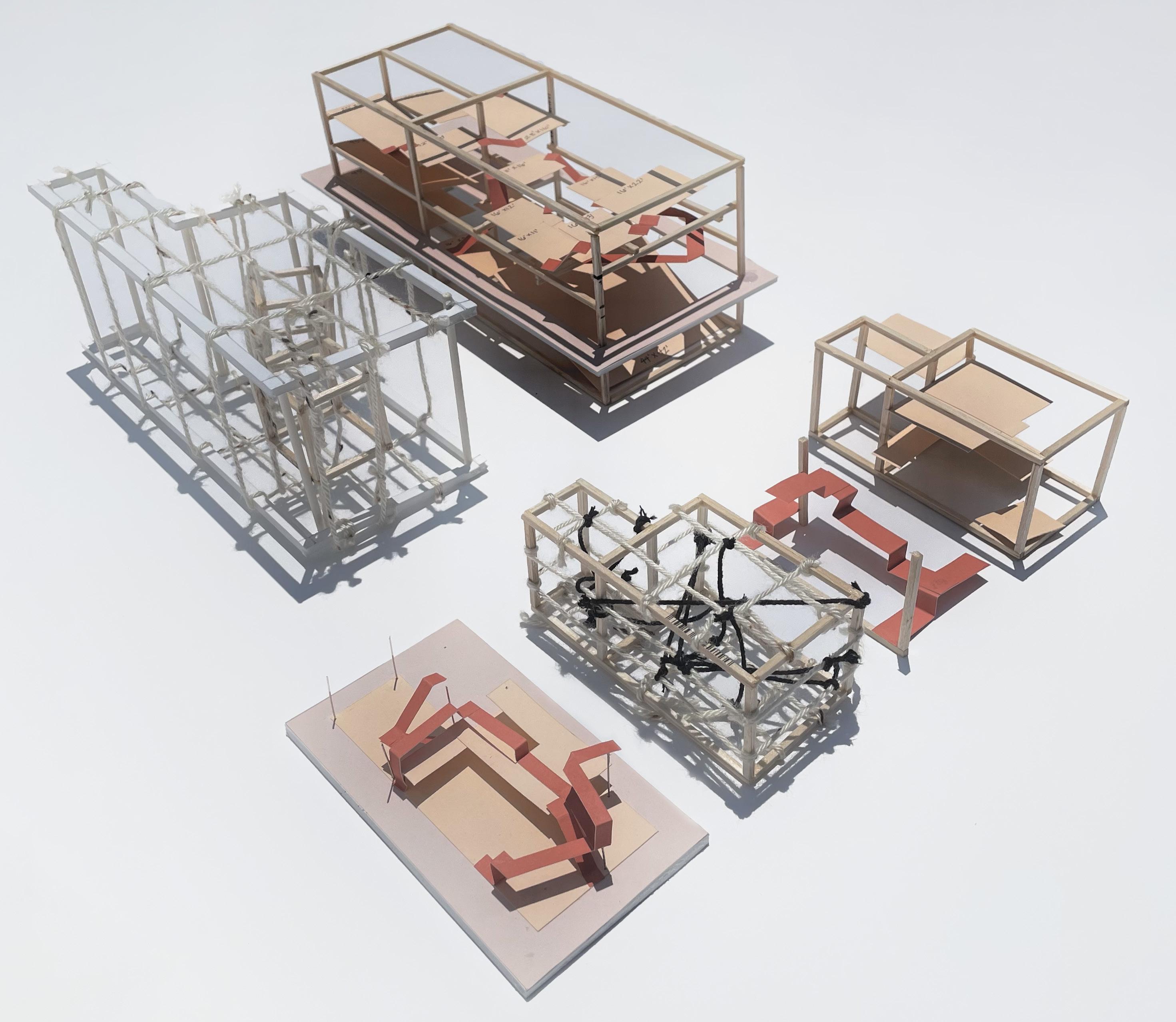 To accompany a space that allows engagement while also creating a space to display varying sizes of carpentry, fabric work, and stitchings - the Hang-it Gallery exposes its structure and floors by having everything suspended from the ceiling, creating various spaces for visual and physical engagement.